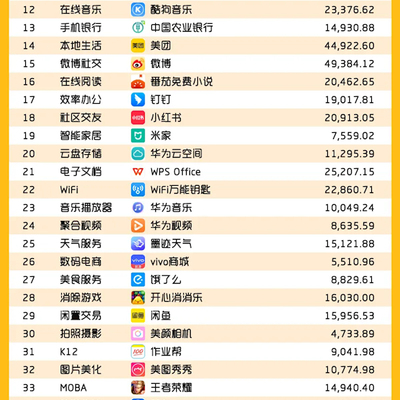 附图是 Quest Mobile 基于 2024Q1 三个月的月活跃用户数规模,发布的 Top 50 赛道,及该赛道的用户规模第一的 APP。