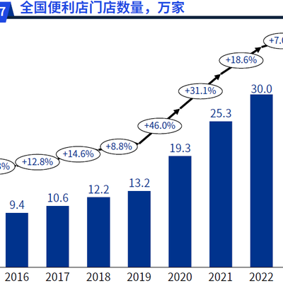 EY 的研究显示,2023 年中国大陆便利店门店数量突破了 32.1 万家,对比 2022 年的 30 万家又增加了 2 万余家。