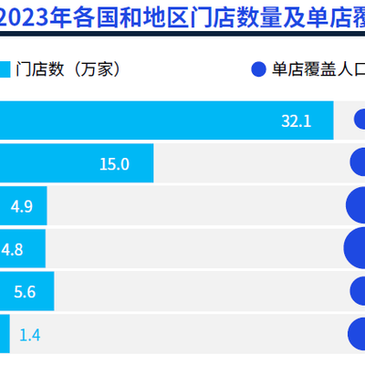 从单店覆盖的人口角度,美国、英国、韩国、日本和中国台湾均在 1000~2000 余人,中国大陆目前为 4000 多人/店,还有很大的增长空间。
