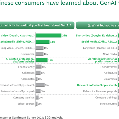 中国消费者知晓和使用 Gen AI 产品的渠道