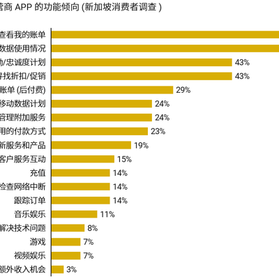 附图来自 Kantar 和 Google 对新加坡消费者的调研,围绕消费者倾向于在运营商 APP 中使用哪些功能。