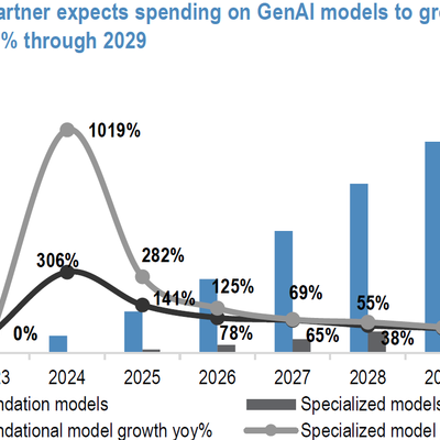 Gartner 预测 2025 - 2029 年,Gen AI 模型的企业支出将从 2025 年的 140 亿美元,提升到 2029 年的 750 亿美元,CAGR 为 67%。