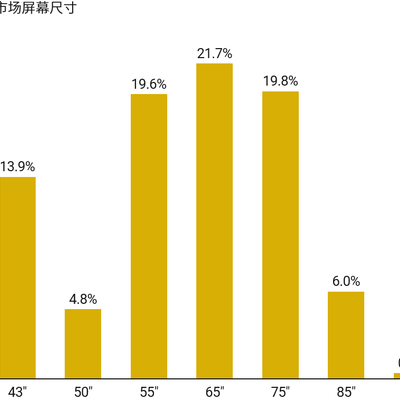 RUNTO 数据监测显示,2023 年中国大陆电视机零售市场中,65 寸、75 寸和 55 寸屏幕正在成为最受欢迎的屏幕尺寸。