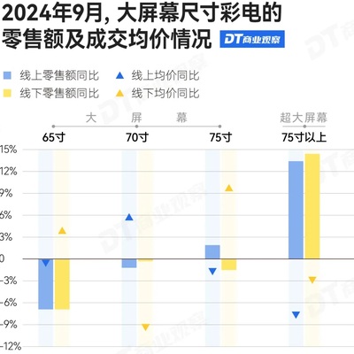 家庭用户对电视机屏幕尺寸的需求正在增加,奥维云网数据显示,2024 年 9 月 75 寸以上超大屏幕电视机销量同比有较高速增长。