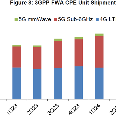 全球 4G/5G FWA CPE 用户侧设备的出货量和制式分布 2024Q3
