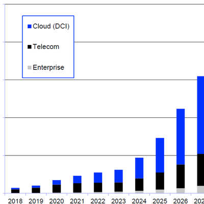 预计到 2028 年,DCI 的增量是运营商网络的 2x 倍。
