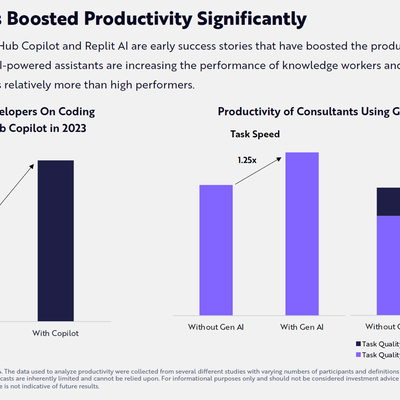 另一个案例是 BCG 咨询公司的专案试验,BCG 的几百名咨询顾问在在使用了生成式 AI 工具后,完成指定任务的速度和质量都取得了一定的提升。