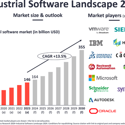 从产业格局角度,工业互联网软件的头部玩家基本都是海外企业,中国大陆背景的企业规模相对小。