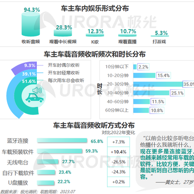 极光调研数据显示,音频已成为汽车空间主要的娱乐形式,围绕 “耳朵经济” 的业务日趋升温。