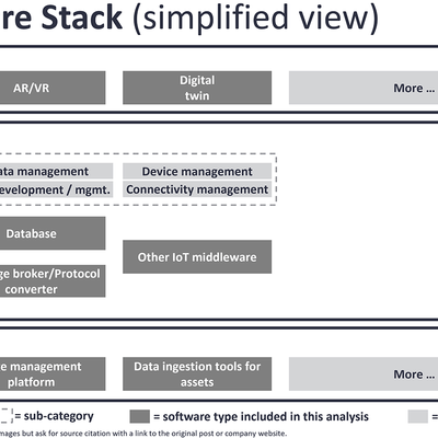 IoT Analytics 讲物联网 IoT 软件归类为四大类:(1) 终端和边缘测(操作系统等);(2) 中间件和平台侧;(3) 应用层;(4) 安全类。