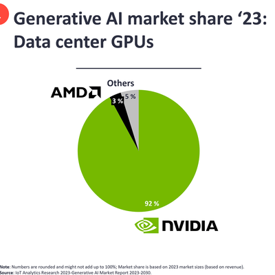 GPU 层:英伟达 Nvidia 占绝了 92% 的份额,处于接近垄断的地位。