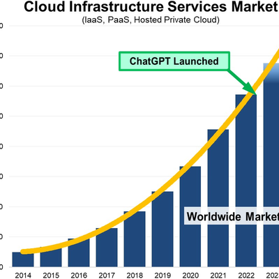 Synergy Research 咨询公司的研究显示,2024 年全球云基础设施的实际市场空间为 3,300 亿美元,对比 2023 年提升 600 亿美元。