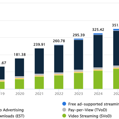 PwC 的研究显示,消费者直接付费的前向收入将从 2024 年的 190 亿美元提升到 2028 年的 230 亿美元;而视频广告额收入将从 2024 年的 320 亿美元提升到 2028 年的 590 亿美元。