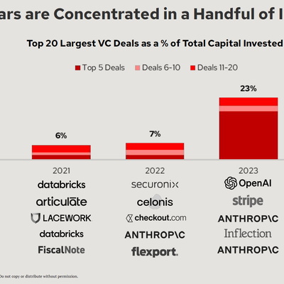 以 Top 20 风险投资融资额占全行业融资额的角度,2020 年该比例是 8%,2024 年提升到 31%。