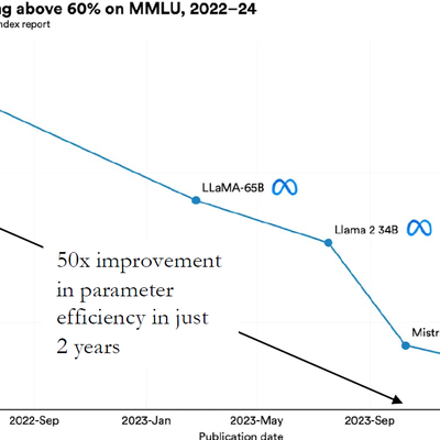 当前,30 亿参数的 “小模型“ 的性能已经达到最开始 ChatGPT 所使用的 1750 亿参数模型的效果。这得益于更好的压缩技术(distillation 蒸馏、quantization 量化等),以及更高质量的训练数据。