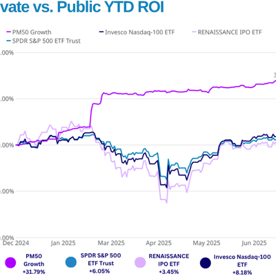 研究机构 PM Insights 的 PM50 是其在二级市场(证券)提及最活跃的精选的 50 家未上市公司的名字。PM Insights 跟踪 PM50 这些大公司的投资回报率 ROI,并对比 S&P 500 ETF 等基金的表现。