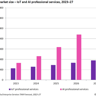 对比而言,IoT 类专业服务的市场空间会从 2023 年的 220 亿美元提升到 380 亿美元。