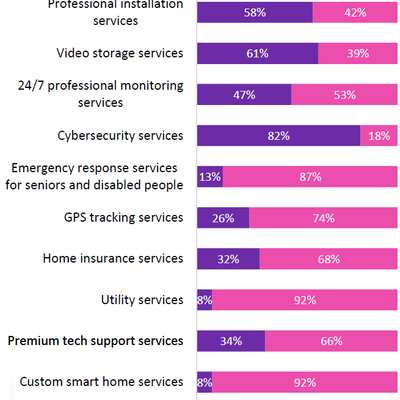 OMDIA 针对全球电信运营商的产品和服务构成调研看,“专业安装”、“视频的存储”、“网络安全”、“24x7 监控服务” 是产品化最高的四个细分方向。