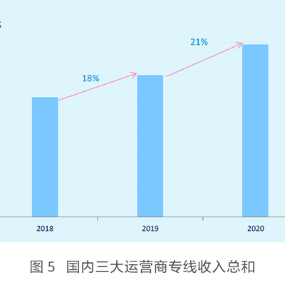 专线业务是电信运营商的重要收入来源之一,2018~2020 年国内三大运营商的专线总收入分别约为 410 亿、486 亿和 590 亿,每年呈现约20% 的增长幅度。