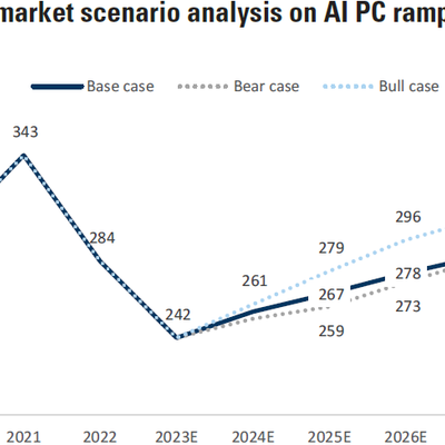 IDC 咨询公司预测,2024 年全球个人计算设备的出货量可达 3.986 亿台,会扭转 2022-2023 的下行态势,同比增幅可达 2.6%。