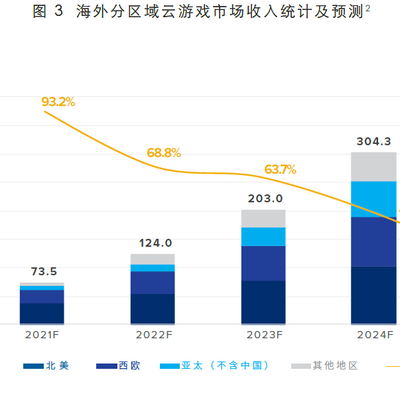 IDC 咨询公司预计到 2025 年,海外(不含中国)云游戏的市场收入空间可达 400 亿元。北美可占一半份额(51.3%)。
