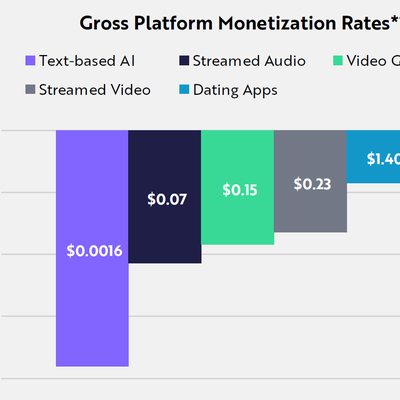 约会类 APP 的货币化率最高,达到了 1.40 美元/小时。