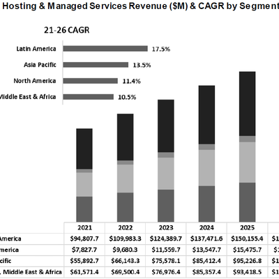 451 Research 咨询公司的研究显示,全球云计算基础设施、主机托管和管理服务在未来几年会保持两位数的增长。