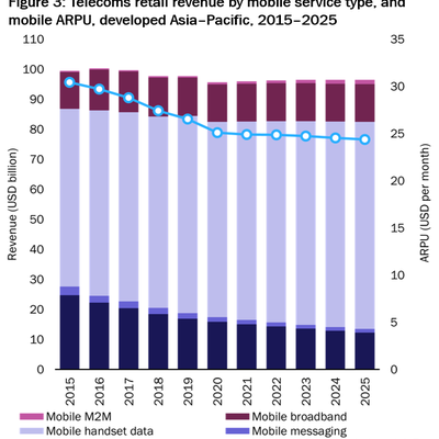 Analysys Mason 的一组数据预测了亚太地区(发达市场)移动业务的市场空间。