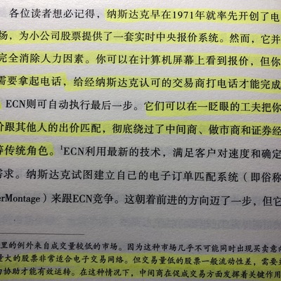NASDAQ 当时面临的窘境:企业在其挂牌上市,但股票的交易量从最开始 100%,下降到 2002 年 13~14% 左右。而当时新兴了若干家股票电子交易网络代替了过去打电话的环节。