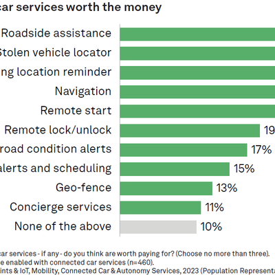451 Research 在 2023 年针对北美消费者的调研,围绕车联网的细分功能,有哪些最值得付费购买时?