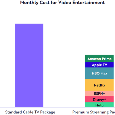 以美国电视市场为例,典型的有线电视每月 ARPU 为 110 美元左右,而北美 Top 7 OTT 的付费会员加在一起也才 70 美元左右。