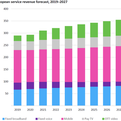 OMDIA 咨询公司估计欧洲市场(电信 + 付费电视 + OTT 视频)总收入在 2027 年将突破 3,500 亿欧元,对比 2020 年不到 3,000 亿欧元的体量增加了不少。