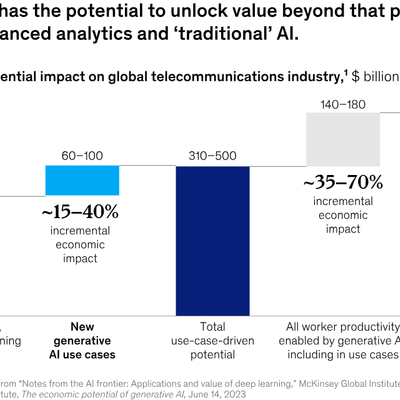 Mckinsey 研究认为,传统的数据分析和 AI 可以带给电信运营商 2,500-4,000 亿美元价值。