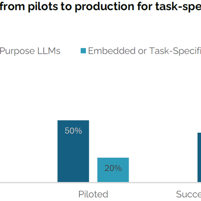 如果是 ChatGPT 类的通用工具,成功部署的比例为 40%;而如果是面向企业特定的专属任务则成功率只有 5%。