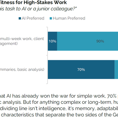 有能力胜任有一定复杂度的工作,是区别 AI 的(暂时)有效手段。即便是初级员工,也应考虑这个角度。