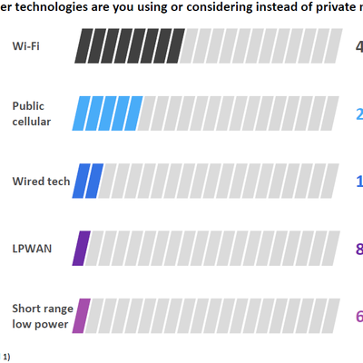 OMDIA 咨询公司在 2022 年的企业客户调研显示,Wi-Fi 仍然是企业专网使用率最高的技术,占比达到了 40%。