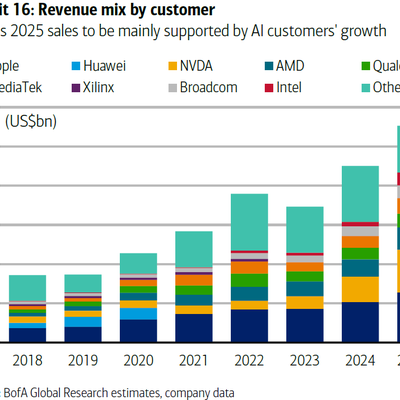 以台积电 TSMC 为例,作为先进制造的代表性企业,仅从客户收入份额角度,其头部客户(7~9 家)贡献了 70% 以上收入。而单一大客户份额均不超过 20%。可能称得上是一种优秀的结构。