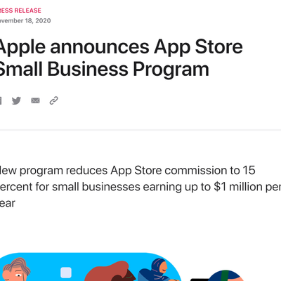 今年新冠疫情对产业各方造成重大冲击,AppStore 宣布针对流水小于 100 万美元的开发者,佣金费率从 30% 降至 15%。此举为保护生态系统做出了表率。