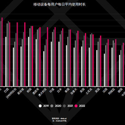 根据 data.ai (原 App Annie) 基于其旗下 App IQ & Game IQ 二十万款应用的追踪数据显示,主要地区的移动设备平均每天使用时长超过了 5 小时。