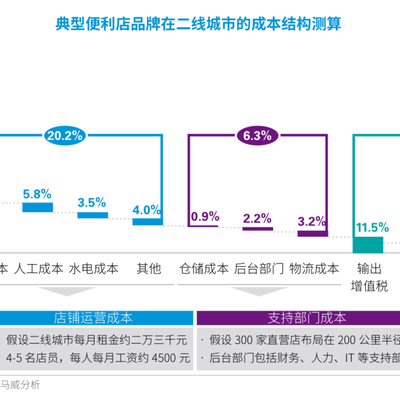KPMG 的一项研究归纳了典型便利店(二线城市)的成本结构,净利润水平为 5% 左右。