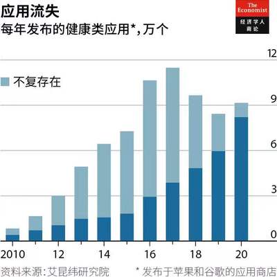 The Economist 报道,Apple 和 Google 的应用商店有超过 40 万款健康保健类的 App,每天新增 250 款。