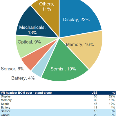 附件数据来自 Morgan Stanley,典型的 VR 独立头显在 2021 年的元器件成本结构。