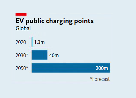 新能源汽车的快速发展已成为事实。经济学人(The Economist)估计了全球公共充电桩的数量,2020 年大约 130 万个,预计 2030 年有 4000 万个。