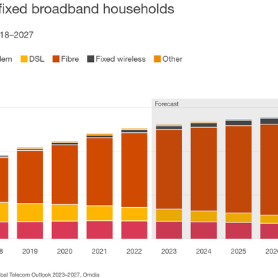 基于 4G 和 5G(重点是 5G)的 FWA 的增速最大,2027 年可达 8,000 万户对比 2022 年的 4,300 万户接近翻倍。