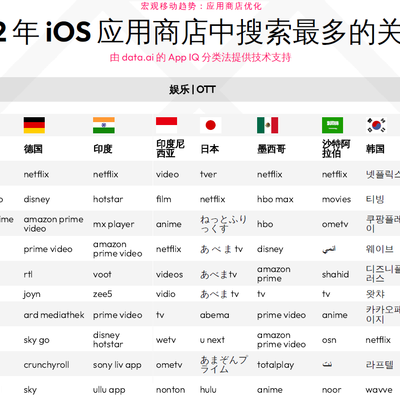 可以通过下图一窥美国用户在 AppStore 的搜索行为,也反映了用户对哪些东西更有兴趣。