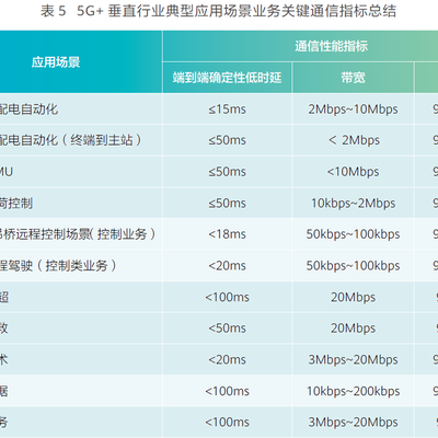 5G + 垂直行业的应用方向中,有一类就是针对关键通信场景。附图是中国移动的汇总,总结了几个行业的典型需求指标。