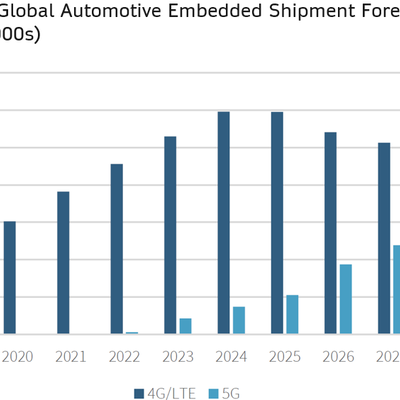 根据 Strategy Analytics 的研究,全球车联网前装市场,4G 版的顶峰在 2024~2025 年,近 6,000 万部/年。5G 版在 2028 年的出货量接近 3,000 万部/年。