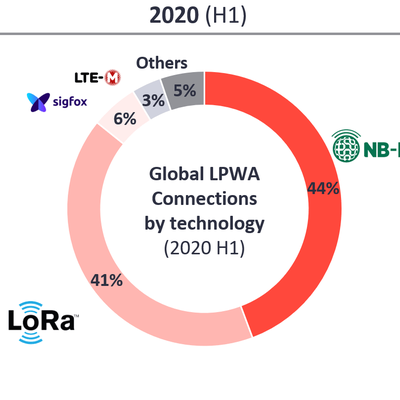 来自 IoT Analytics 研究公司的研判,其认为 2020~2025 两项技术的份额会保持相对稳定,NB-IoT 为 43%(2025年),LoRa 为 41(2025年)。