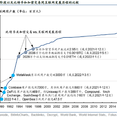 附件来自华泰证券,其对比了 Web3 当前状态和全球互联网发展历程,主要是从用户数角度。