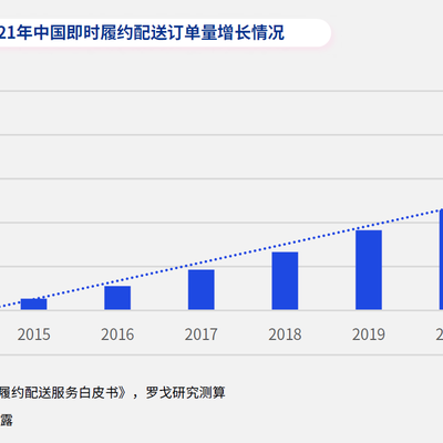 根据罗戈研究的测算,2021 年中国即时零售履约的订单量为 308.5 亿单,年复合增长率接近60%。